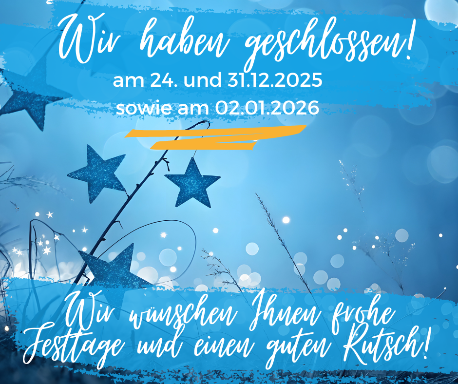 Am 24. und 31.12.2025 haben wir geschlossen. Zwischen den Jahren sind wir am 29. und 30.12.2025 zu den gewohnten Öffnungszeiten für Sie da. Am Freitag, den 02.01.2026 bleiben Verwaltung Bauhof dann geschlossen Ab dem 05.01.2026 freuen wir uns, Sie wieder begrüßen...